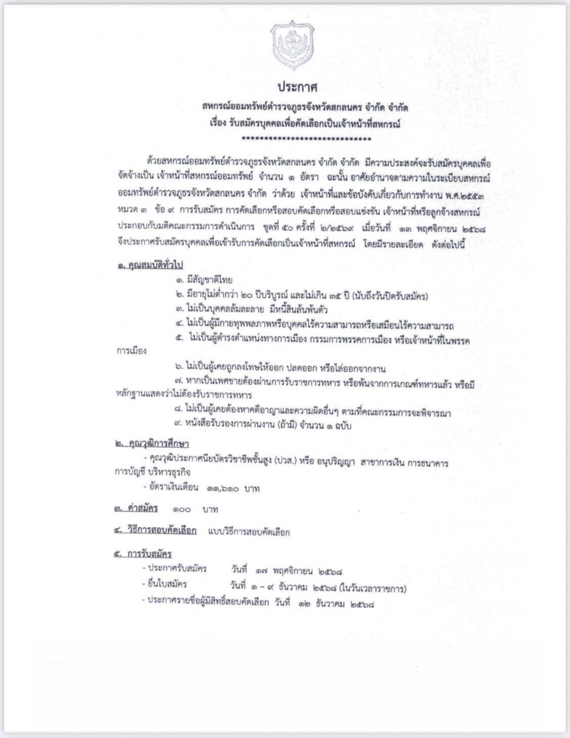 ประกาศ รับสมัครผู้สอบบัญชีสหกรณ์ ประจำปี 2568